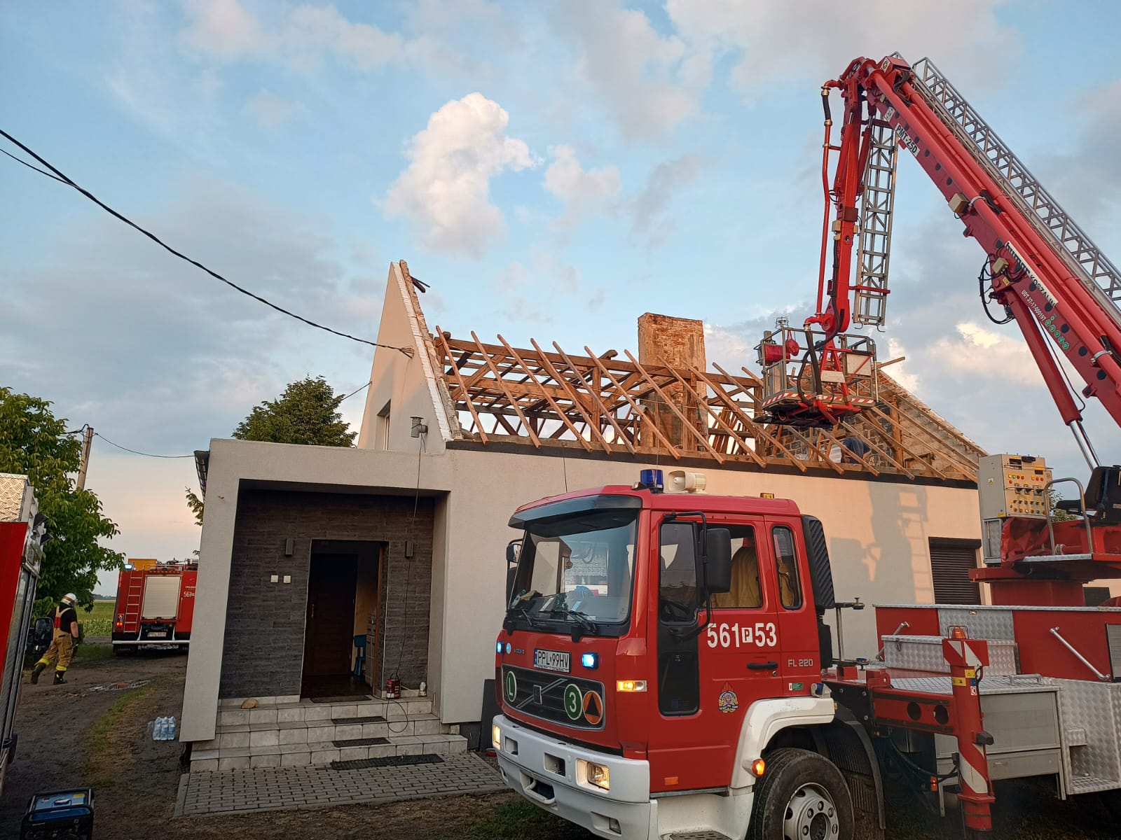 Pierwsze zgłoszenia zaczęły wpływać do dyżurnego Stanowiska Kierowania Komendanta Powiatowego Państwowej Straży Pożarnej w Pleszewie przed godziną osiemnastą. Większość z nich dotyczyła połamanych drzew i konarów blokujących drogi, w tym także krajowe. Natomiast najgorsze zdarzenie dotyczyło całkowicie zerwanego dachu z budynku mieszkalnego jednorodzinnego w miejscowości Sowina. Strażacy zabezpieczyli uszkodzony budynek przed ewentualnymi kolejnymi opadami. Przy tym zdarzeniu ratownicy pracowali ponad 6 godzin. W dwóch innych przypadkach konieczne było usunięcie drzew powalonych na linie energetyczne. W jednym ze zdarzeń silny wiatr zerwał dachówki z dach budynku mieszkalnego. Szczęśliwie w żadnym z tych zdarzeń nikt nie został poszkodowany.