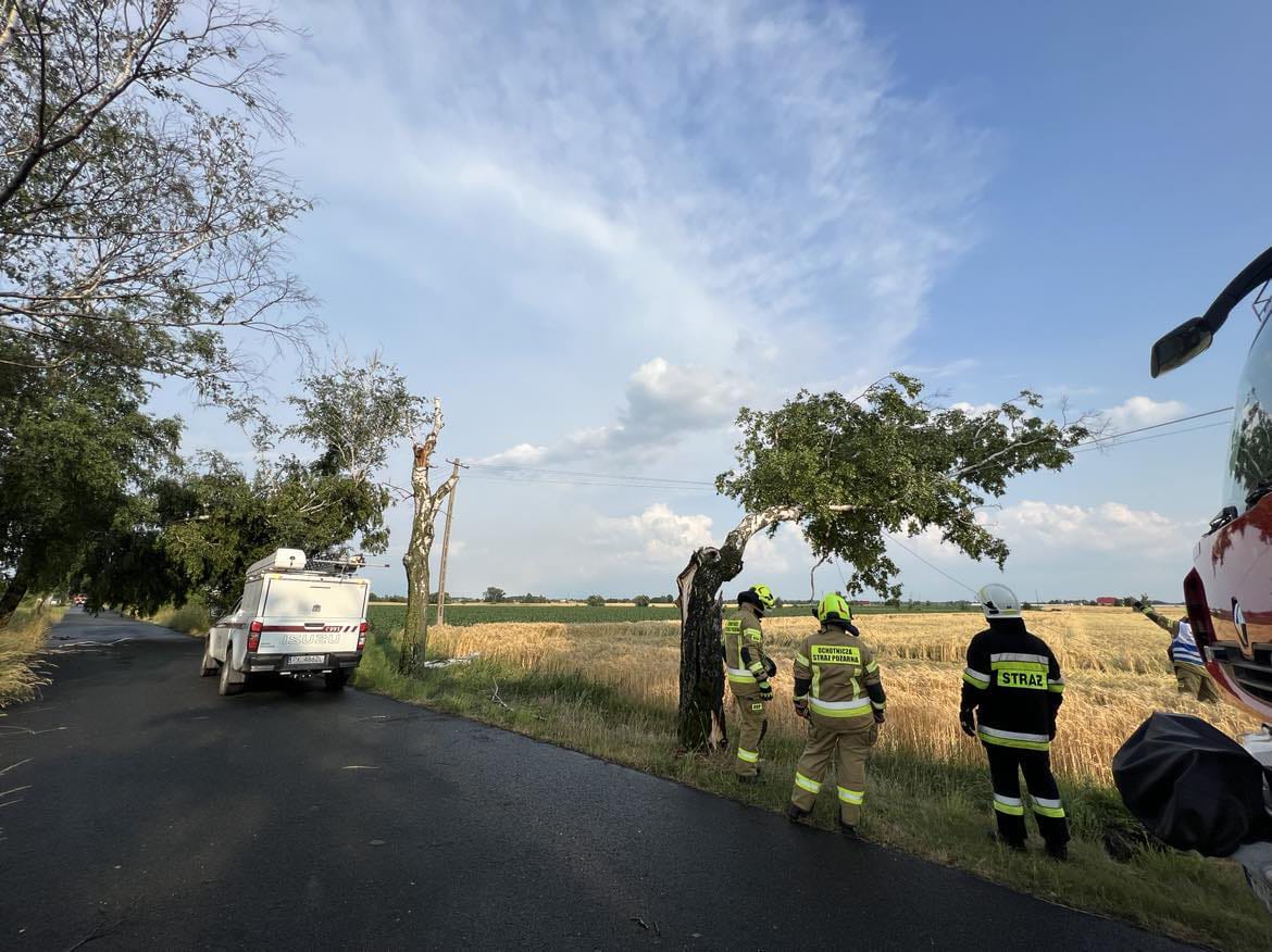 Dwadzieścia razy interweniowali strażacy z pleszewskiej Jednostki Ratowniczo – Gaśniczej oraz Ochotniczych Straży Pożarnych powiatu pleszewskiego, w związku ze zdarzeniami powstałymi w wyniku silnego wiatru, który przeszedł nad powiatem pleszewskim w dniu 21 czerwca 2023 r.