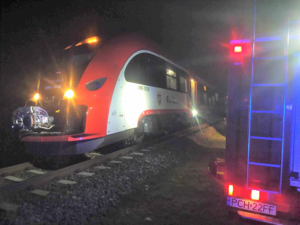 W pociągu osobowym podróżowało 45 pasażerów – sprawdzono stan psychofizyczny podróżujących – nikt nie wymagał pierwszej pomocy. Strażacy oświetlili teren akcji na czas prowadzonych działań dochodzeniowych przez przybyłych policjantów i Prokuratora. Wobec podróżujących zastosowano zastępczy środek transportu w postaci autobusów rejsowych zorganizowanych przez przewoźnika kolejowego. Po podstawieniu komunikacji zastępczej ratownicy pomogli pasażerom w przejściu z pociągu do autobusów. Podczas działań przybyła na miejsce małżonka ofiary, która źle się poczuła. Ratownicy udzielili kobiecie kwalifikowanej pierwszej pomocy, a przybyły na miejsce akcji Zespół Ratownictwa Medycznego zakwalifikował kobietę do hospitalizacji.
