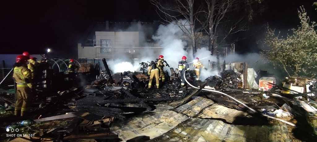 Po przybyciu na miejsce zdarzenia stwierdzono, że pali się altana działkowa, która w całości jest objęta pożarem. Działania zastępów straży pożarnej polegały na podaniu w natarciu jednego prądu wody na palący się obiekt oraz w jednego prądu wody w obronie sąsiednich budynków. W trakcie przeszukania miejsca pożaru ujawniono zwłoki mężczyzny. Działania ratownicze trwały ponad 3 godziny. Dalsze czynności w zakresie ustalenia przyczyny pożaru oraz tożsamości ofiary prowadzi Policja pod nadzorem Prokuratury.
