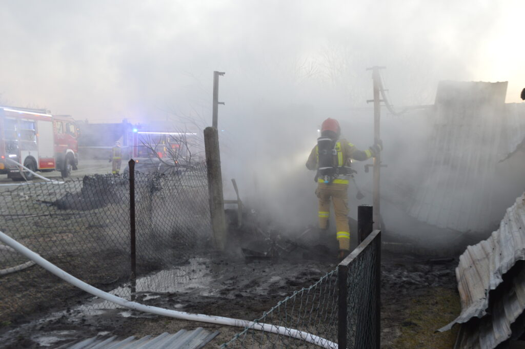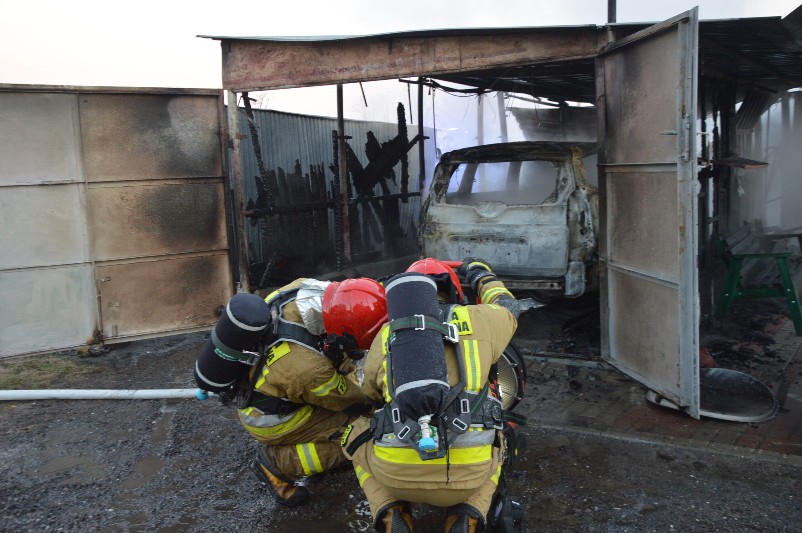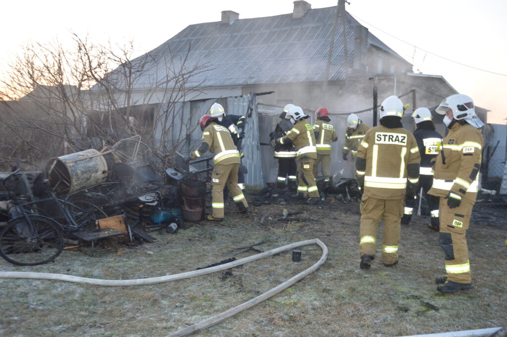 Po stłumieniu ognia przy użyciu wody, strażacy usunęli z wnętrza pozostałości po nadpalonym lub zniszczonym mieniu, a także wykonali prace rozbiórkowe elementów konstrukcji garażu.