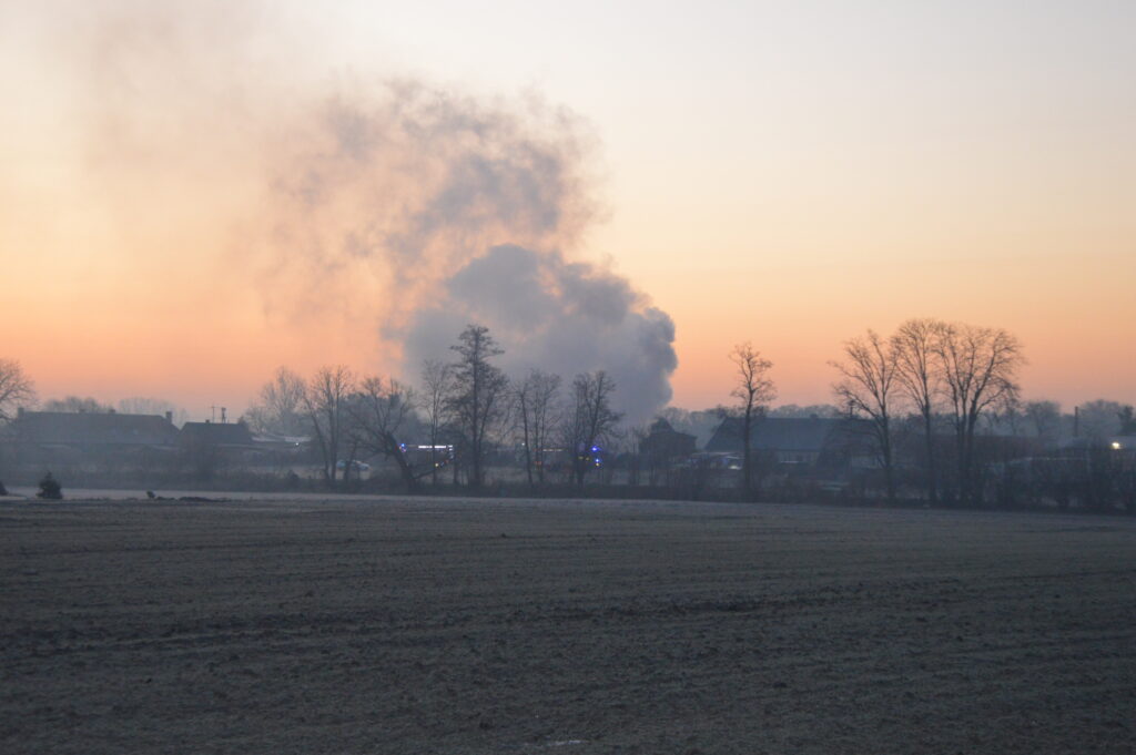 Pożar na terenie jednej z posesji w Golince (gm. Bojanowo) został zauważony w środę, 10 stycznia 2024 r. po godz. 7.00.