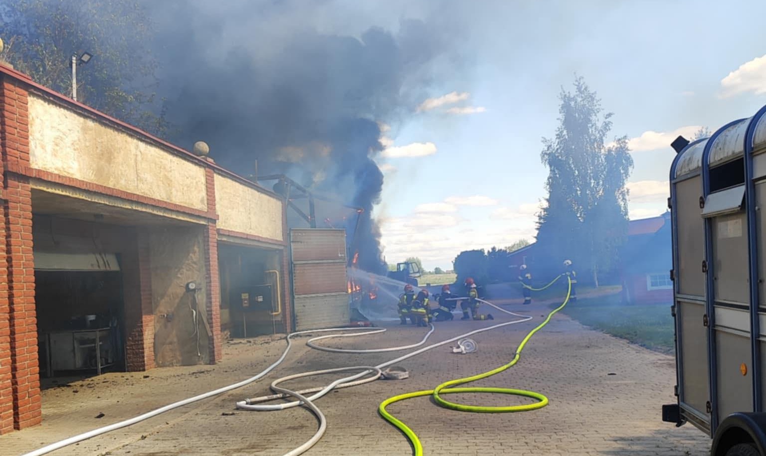 Strażacy z Szamotuł gasili pożar warsztatu w Ceradzu Kościelnym