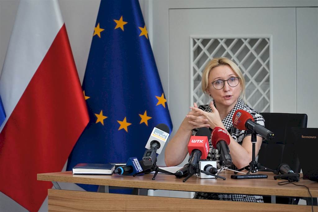 Wojewoda wielkopolski Łukasz Mikołajczyk wspólnie z Agnieszką Pachciarz, dyrektor wielkopolskiego oddziału wojewódzkiego Narodowego Funduszu Zdrowia w Poznaniu przedstawili podczas konferencji prasowej aktualną sytuację po wprowadzeniu nowej strategii walki z koronawirusem oraz bieżący stan łóżek i sprzętu, którymi dysponują szpitale.