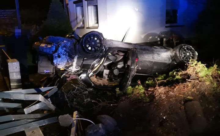 OSP Rakoniewice: 23.01.2021r o godz. 1:40 w Rakoniewicach na ul. Pocztowej doszło do wypadku drogowego. Samochód osobowy marki BMW zjechał