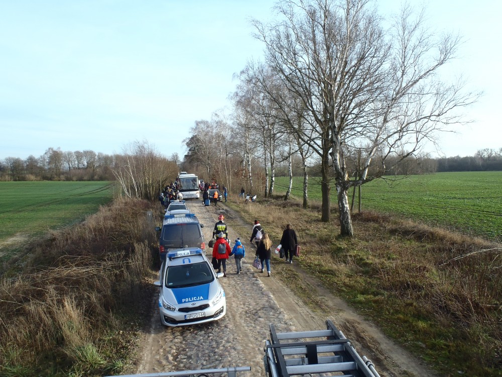 Dnia 2 stycznia około godziny 12.00 do stanowiska kierowania komendanta powiatowego wpłynęło zgłoszenie dotyczące wypadku na niestrzeżonym przejeździe kolejowym w miejscowości PGR Podgaje, gdzie pociąg osobowy relacji Katowice – Słupsk uderzył w przejeżdżający pojazd tj. samochód osobowy VW Golf.
