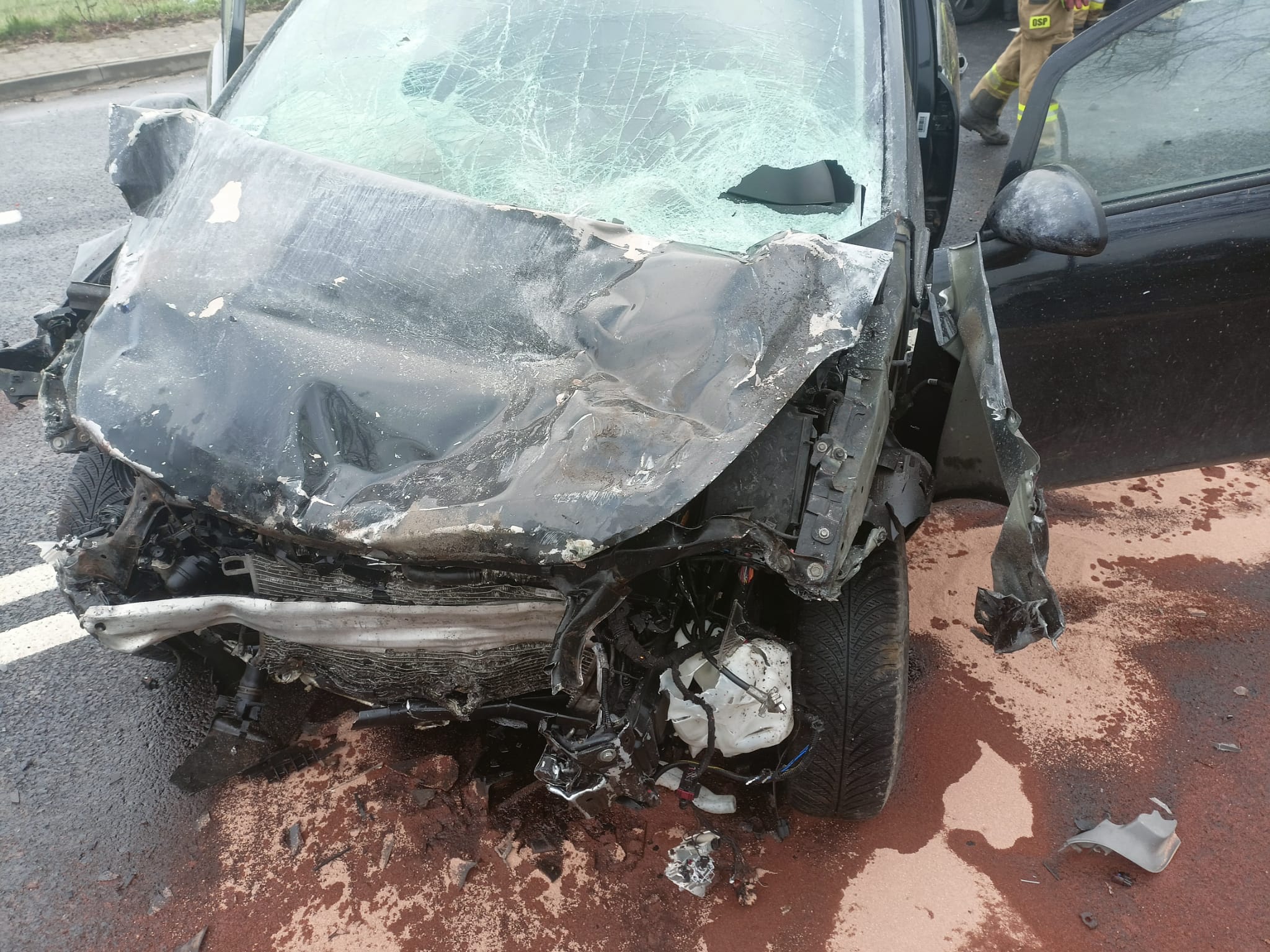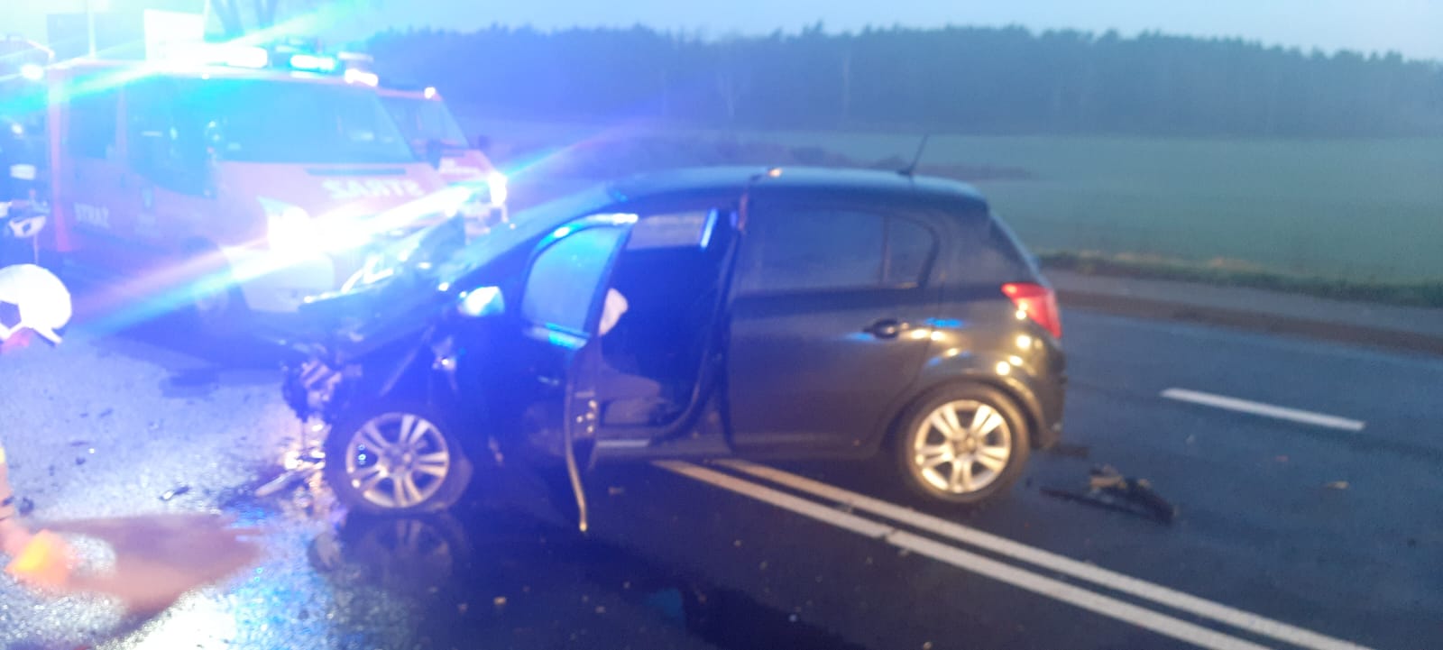 Po dojeździe na miejsce zdarzenia strażacy zastali dwa samochody osobowe, które zderzyły się ze sobą, droga krajowa była nieprzejezdna.