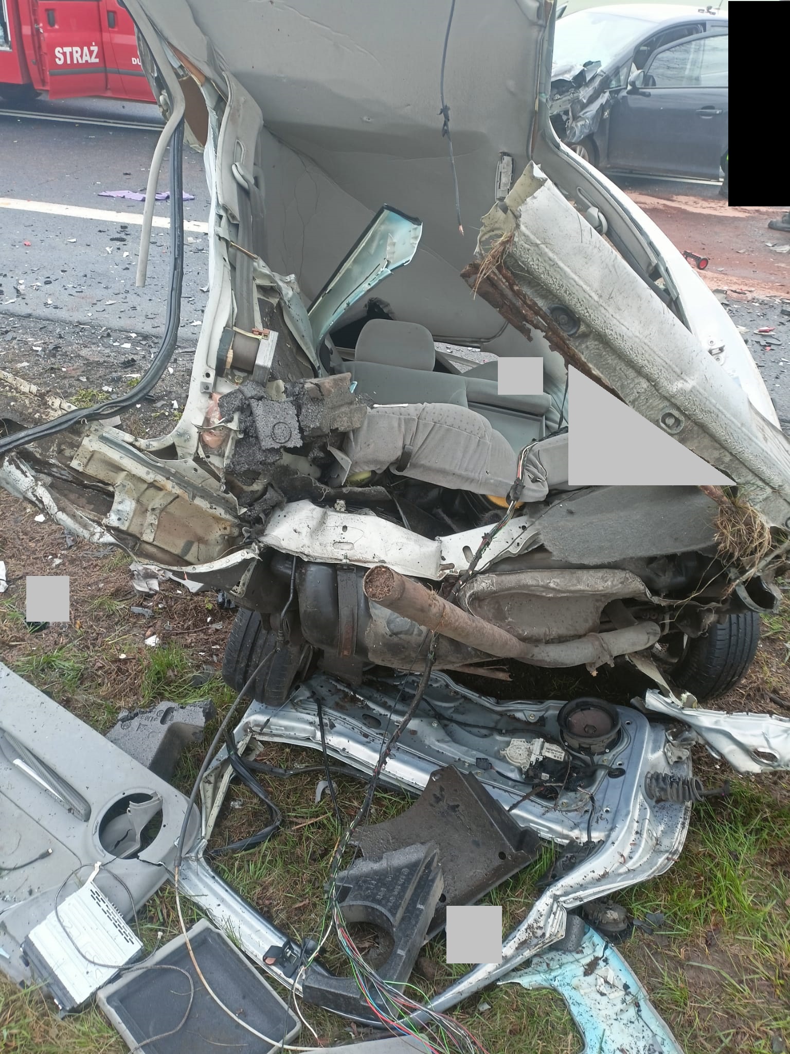 Kierujący pojazdem Volkswagen znajdował się na poboczu drogi – brak funkcji życiowych, natomiast dwie osoby podróżujące samochodem Opel opuściły pojazd przed przybyciem SP i znajdowały się w pobliżu.