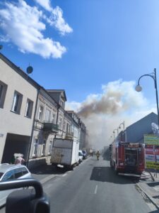 Po przybyciu na miejsce zdarzenia stwierdzono wydobywający się dym z poddasza budynku. Dach uległ częściowemu zawalaniu, a pożar rozprzestrzeniał się na pozostałą część kamienicy. Na miejscu obecny był mieszkaniec, który ewakuował się z budynku przed przybyciem straży pożarnej oraz poinformował strażaków, że budynek zamieszkuje sam, ale czasami przebywają w nim osoby bezdomne.