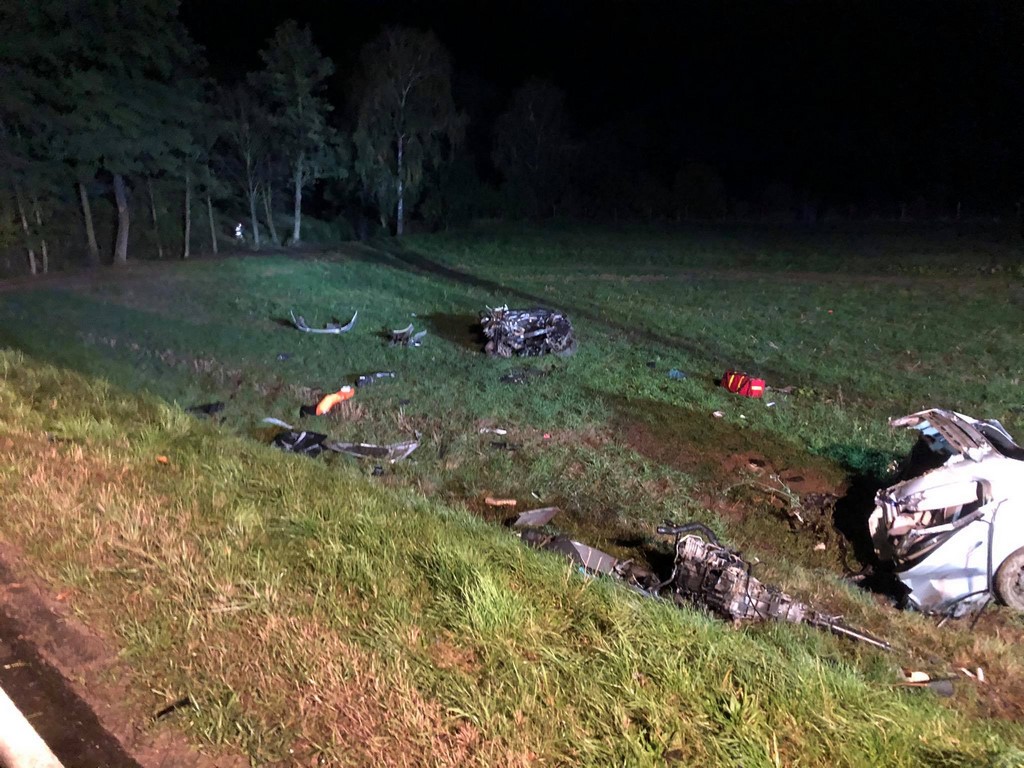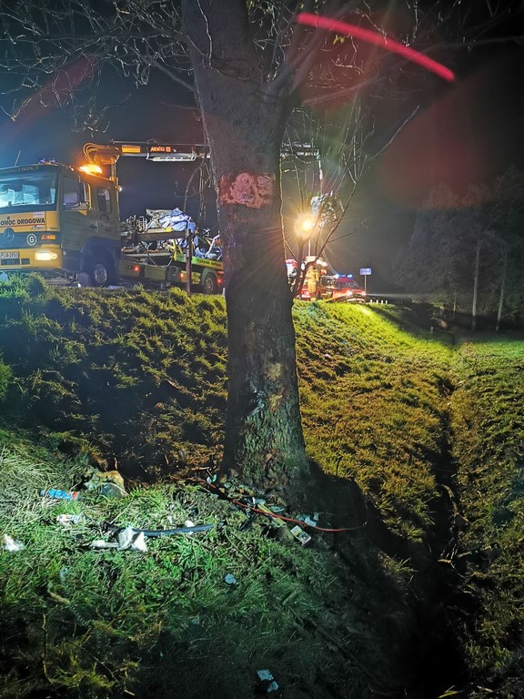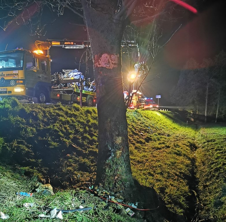 Tragiczny wypadek na DK 15! BMW w wyniku uderzenia w drzewo rozpadło się na części
