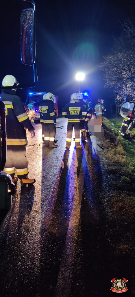 Działania straży pożarnej polegały na zabezpieczeniu i oświetleniu miejsca zdarzenia. Strażacy ustabilizowali zdeformowaną bryłę pojazdu, następnie przy użyciu narzędzi hydraulicznych wykonali dostęp do osoby poszkodowanej i na noszach typu deska ewakuowali ją na zewnątrz. Osoba poszkodowana została przekazana Zespołowi Ratownictwa Medycznego. Niestety w wyniku poniesionych obrażeń kobieta poniosła śmierć na miejscu. W tym samym czasie strażacy przeszukiwali pojazd oraz teren wokół w celu zlokalizowania ewentualnych osób biorących udział w zdarzeniu – innych osób nie odnaleziono. Funkcjonariusze Policji wstrzymali ruch na drodze i zorganizowali objazdy. Po zakończonych czynnościach Prokuratora i techników policyjnych wrak samochodu został zabrany przez pomoc drogową. Z drogi krajowej usunięto pozostałości powypadkowe. Na tym działania zakończono i zastępy powróciły do miejsca stacjonowania.