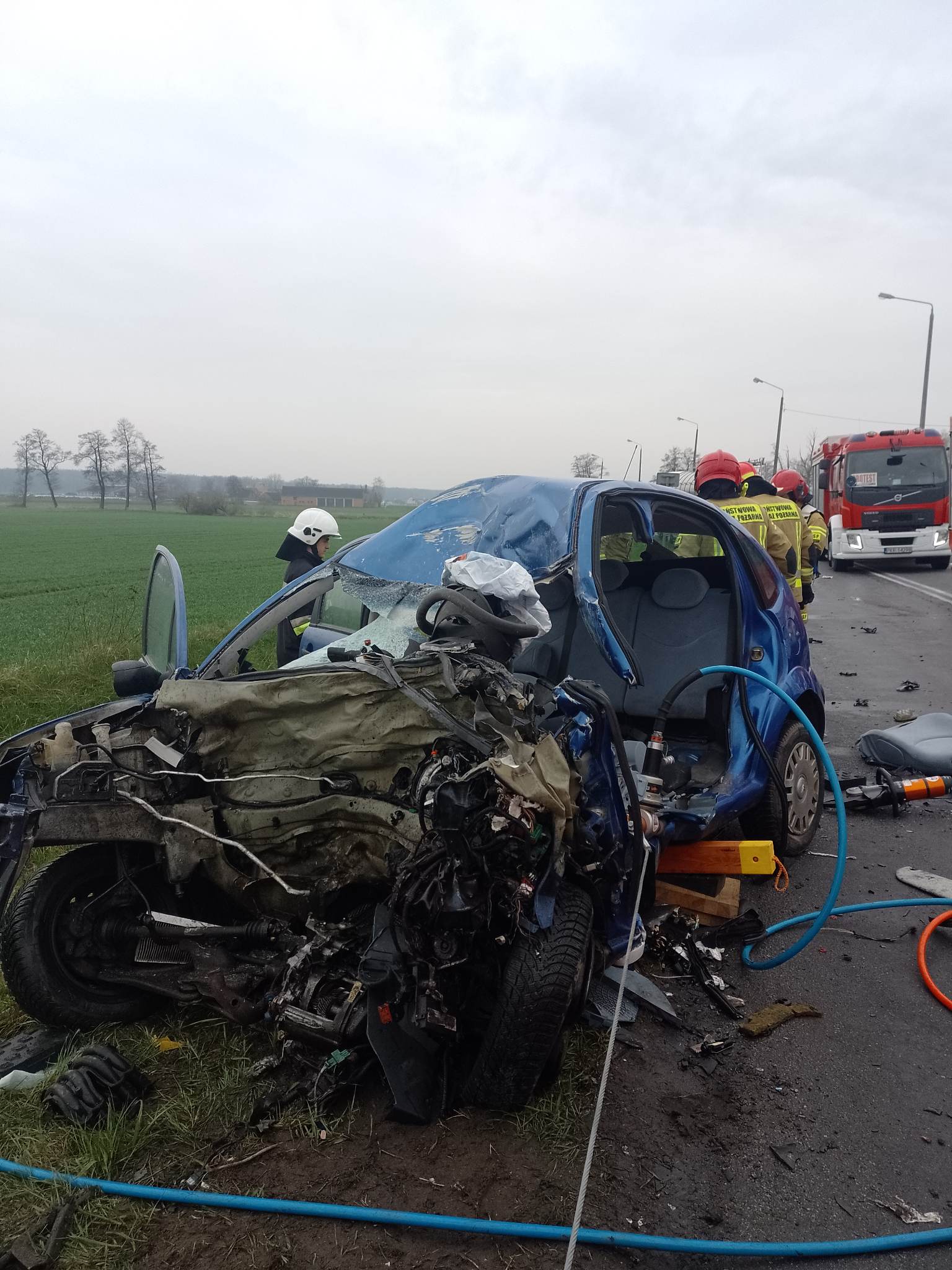 Strażacy zabezpieczyli miejsce zdarzenia i przy wykorzystaniu narzędzi hydraulicznych przystąpili do wykonywania dostępu do kierowcy osobówki. Mężczyznę ewakuowano na noszach typu deska na zewnątrz, niestety na skutek poniesionych obrażeń osoba poniosła śmierć na miejscu. Po zakończonych czynnościach realizowanych przez Policję z jezdni usunięto pozostałości po zdarzeniu drogowym, które mogły stanowić zagrożenie dla innych uczestników drogi.
