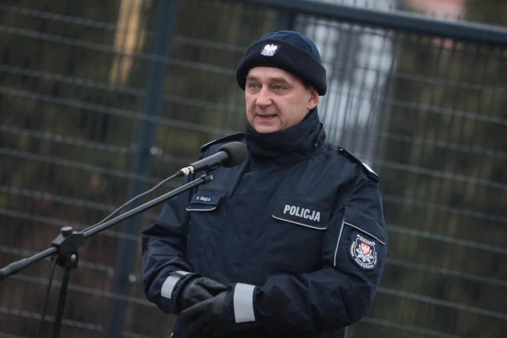 Mł. insp. Piotr Gorynia podczas przemówienia podkreślił, że jest niezmiernie dumny z zakończenia projektu rozbudowy i modernizacji komendy. Wyremontowany obiekt stwarza funkcjonariuszom i pracownikom cywilnym godne warunki pracy. Podziękował wszystkim, dzięki którym projekt stał się rzeczywistością.