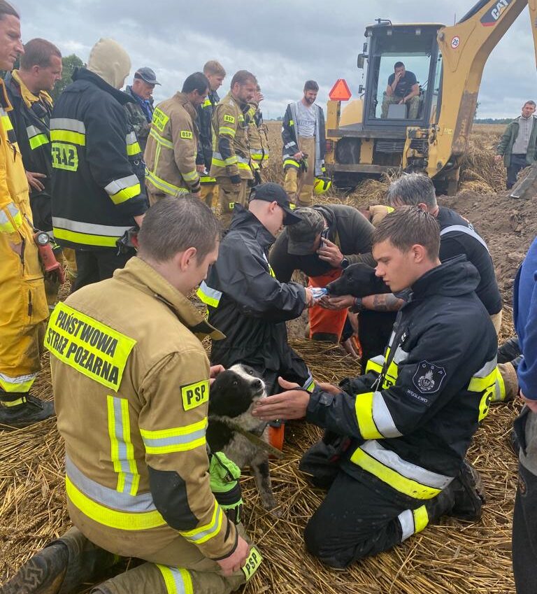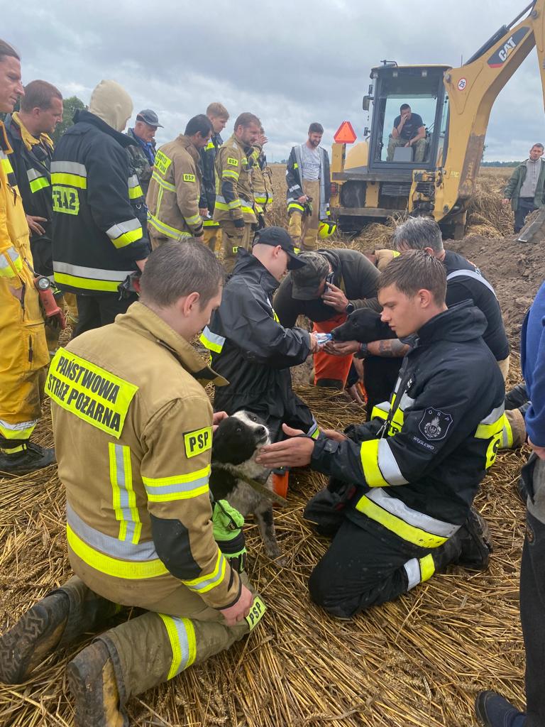 Uwięzione psy w kanale melioracyjnym