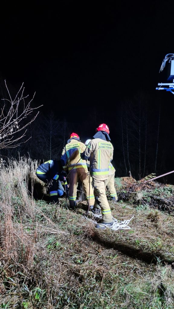 Strażacy przy pomocy linki wyciągnęli psa na powierzchnię. Podjęte czynności pozwoliły na skuteczne wydobycie psa i przekazaniu go właścicielce.