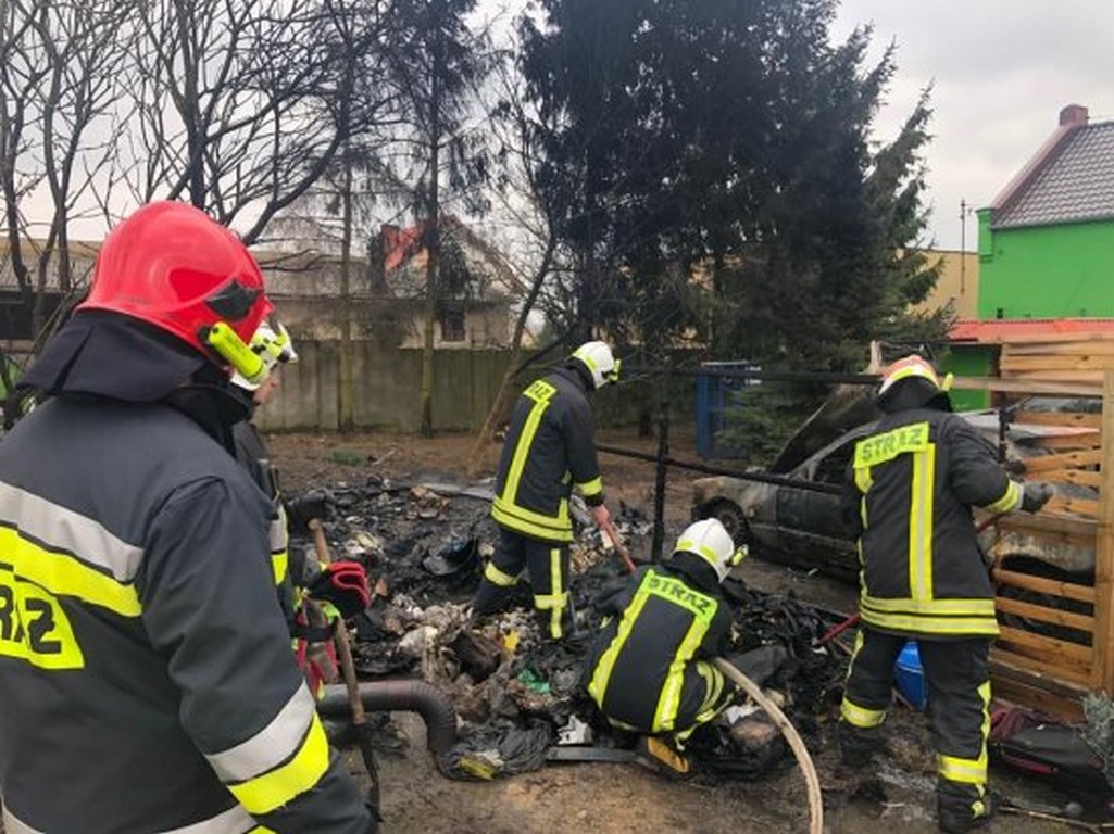 zaangażowani byli w działania ratowniczo gaśniczych na terenie jednej z prywatnych posesji. Doszło tam do powstania pożaru, podczas którego ogień objął składowane części samochodowe oraz pojazd. Pożar został szybko zlokalizowany i ugaszony. W wyniku pożaru spaleniu uległy części samochodowe, opony oraz w znacznym stopniu samochód osobowy marki Mercedes. Policja prowadzi dochodzenie wyjaśniające okoliczności i przyczynę powstania pożaru.