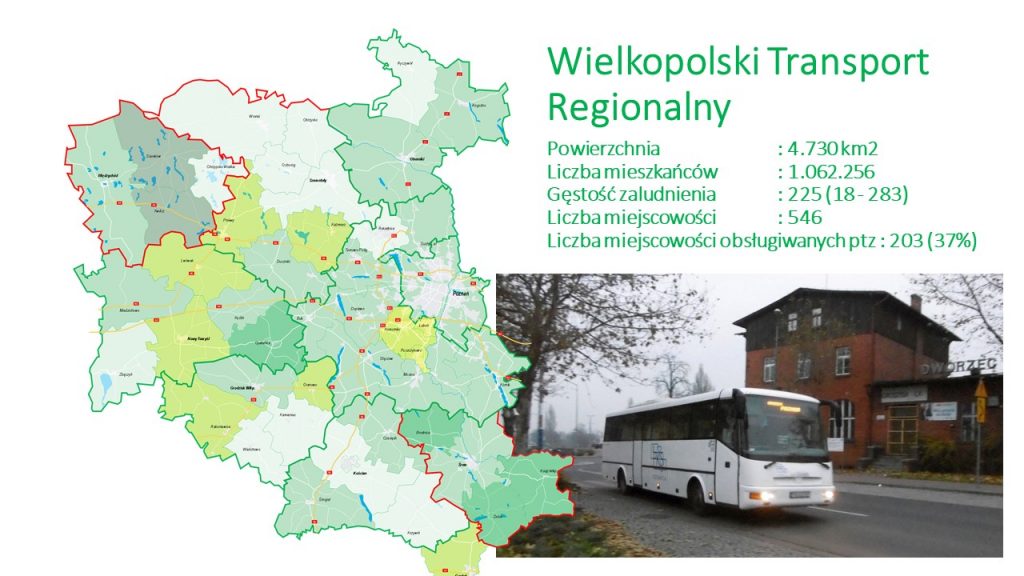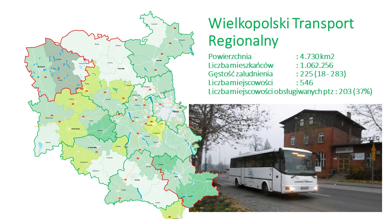 „Wielkopolski Transport Regionalny” jest piętnastym związkiem tego typu w Polsce, a odpowiedzialnym za organizację publicznego transportu zbiorowego. Jednak pod względem zasięgu i oddziaływania jest największym związkiem powiatowo-gminnym w Polsce. Obszar jego działania to 4.730 km2. Zamieszkuje go łącznie 1.062.256 mieszkańców rozlokowanych w 546 miejscowościach. Jak na razie linie regionalnego transportu drogowego docierają do 203 miast i wsi, które stanowią 37% miejscowości położonych na terenie Związku. Nie oznacza to, że dostępność transportowa jest tak słaba. Część gmin aglomeracji poznańskiej ma własne spółki komunalne i dominującą rolę odgrywa w nich komunikacja lokalna. Ich udział w przedsięwzięciu ma na celu stworzenie siatki szybkich połączeń (autobusy nie będą zatrzymywać się na wszystkich przystankach), łączących gminy zarówno z Poznaniem, jak i z sąsiadującymi miastami powiatowymi. Z kolei Dopiewo, Rogoźno i Śrem organizują własną komunikację gminną w oparciu o operatorów prywatnych. Jej zadaniem jest dowóz pasażerów do głównych punktów przesiadkowych. Z kolei Czempiń i Śmigiel, przystępując do Związku, oczekują całościowego rozwiązania potrzeb komunikacyjnych swoich mieszkańców, obejmujących przewozy szkolne, linie gminne oraz te o zasięgu powiatowym i międzypowiatowym. Podobne oczekiwania ma także gmina Stęszew.