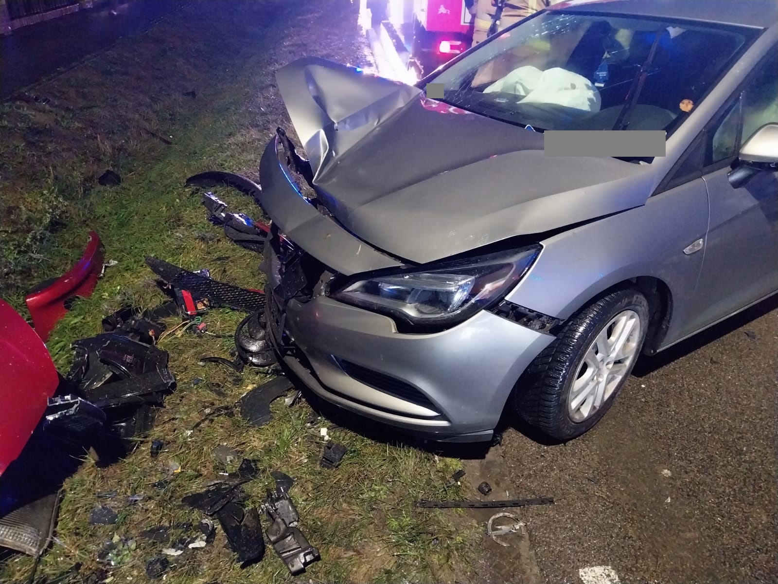 Po dojeździe na miejsce zdarzenia strażacy zastali trzy samochody osobowe, dwa pojazdy zderzyły się ze sobą czołowo, natomiast trzeci w celu uniknięcia zdarzenia wjechał do rowu. Kierujący i pasażerowie opuścili pojazdy przed przybyciem SP i znajdowali się w pobliżu pod opieką świadków zdarzenia.