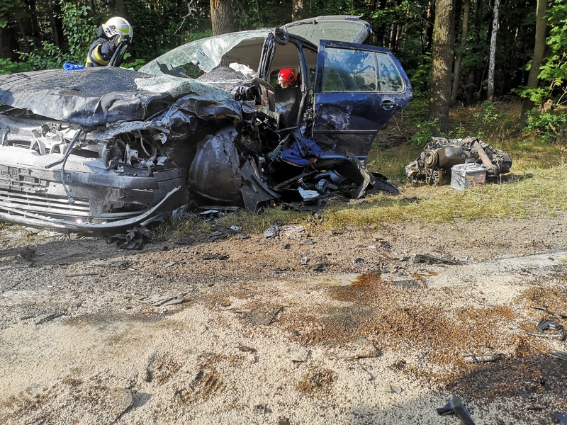 Działania strażaków polegały na zabezpieczeniu miejsca zdarzenia, wykonaniu dostępu do osoby przebywającej w pojeździe (VW), pomocy pogotowiu w MCR, wyznaczeniu i zabezpieczeniu lądowiska dla LPR, pomocy w transporcie poszkodowanych do karetek i śmigłowca oraz sorpcji płynów eksploatacyjnych. Po zakończeniu czynności przez policję działania straży polegały na przemieszczeniu samochodu Fiat na pobocze i usunięciu z jezdni elementów pojazdów. W działaniach ratowniczo – gaśniczych udział brało łącznie 6 zastępów w sile 24 strażaków Państwowej i Ochotniczej Straży Pożarnej.