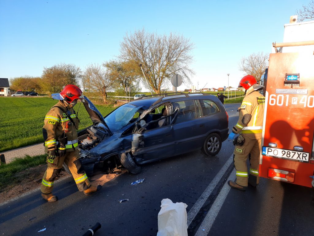 Po przybyciu na miejsce zdarzenia zadysponowanych sił i środków w wyniku rozpoznania ustalono, że doszło do zderzenia samochodu osobowego z tirem, jedna osoba poszkodowana poza pojazdem przytomna droga wojewódzka 432 zablokowana w miejscowości Nochowo. Działania JOP polegały na zabezpieczeniu miejsca zdarzenia, odłączeniu akumulatorów w pojazdach, udzielaniu kpp kierowcy samochodu osobowego. Po przybyciu ZRM osobę poszkodowaną przekazano celem dalszych badań. Po przebadaniu kierującego pojazdem osobowym ratownik medyczny podjął decyzję o zabraniu do szpitala celem dalszej hospitalizacji. Na czas działań DW 432 była zablokowana. Udział 3 zastępy 14 ratowników, ZRM, Policja.