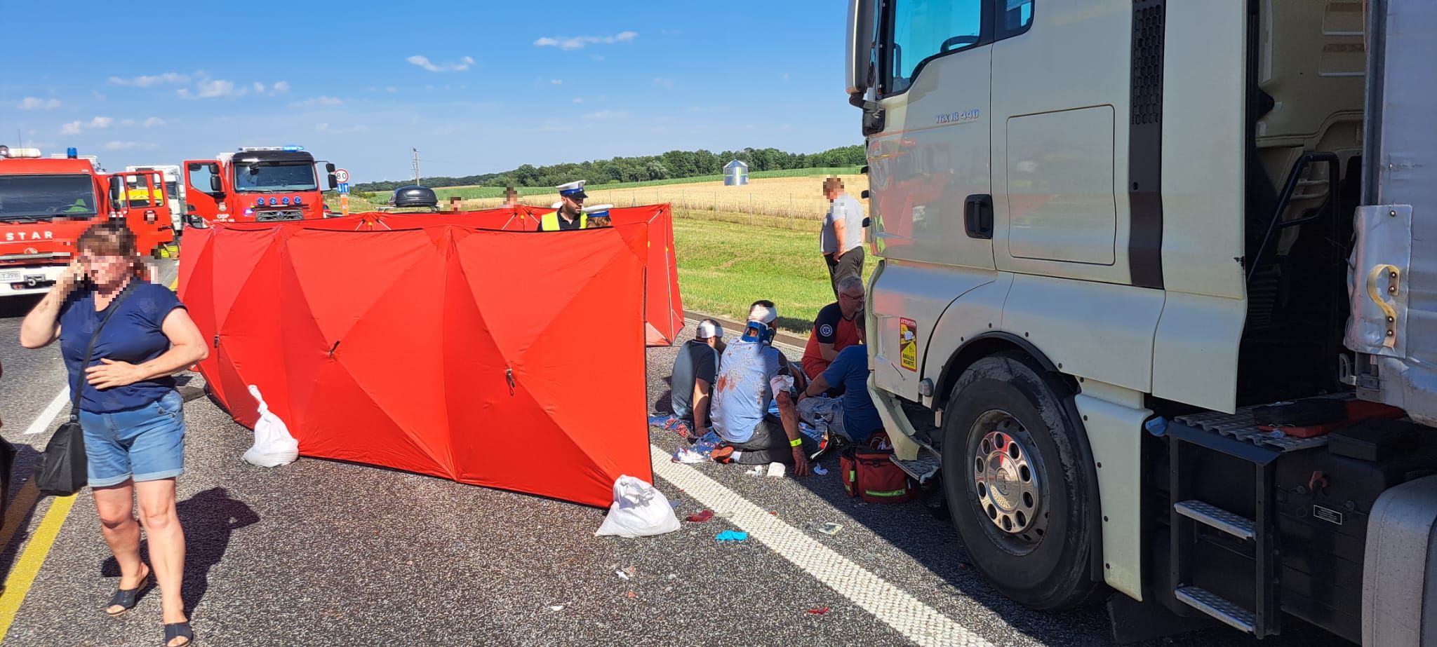 W dniu 15 lipca 2023 roku o godzinie 16:03 do Stanowiska Kierowania Komendanta Powiatowego Państwowej Straży Pożarnej w Nowym Tomyślu wpłynęło zgłoszenie o wypadku samochodu ciężarowego na 115 km autostrady A2.