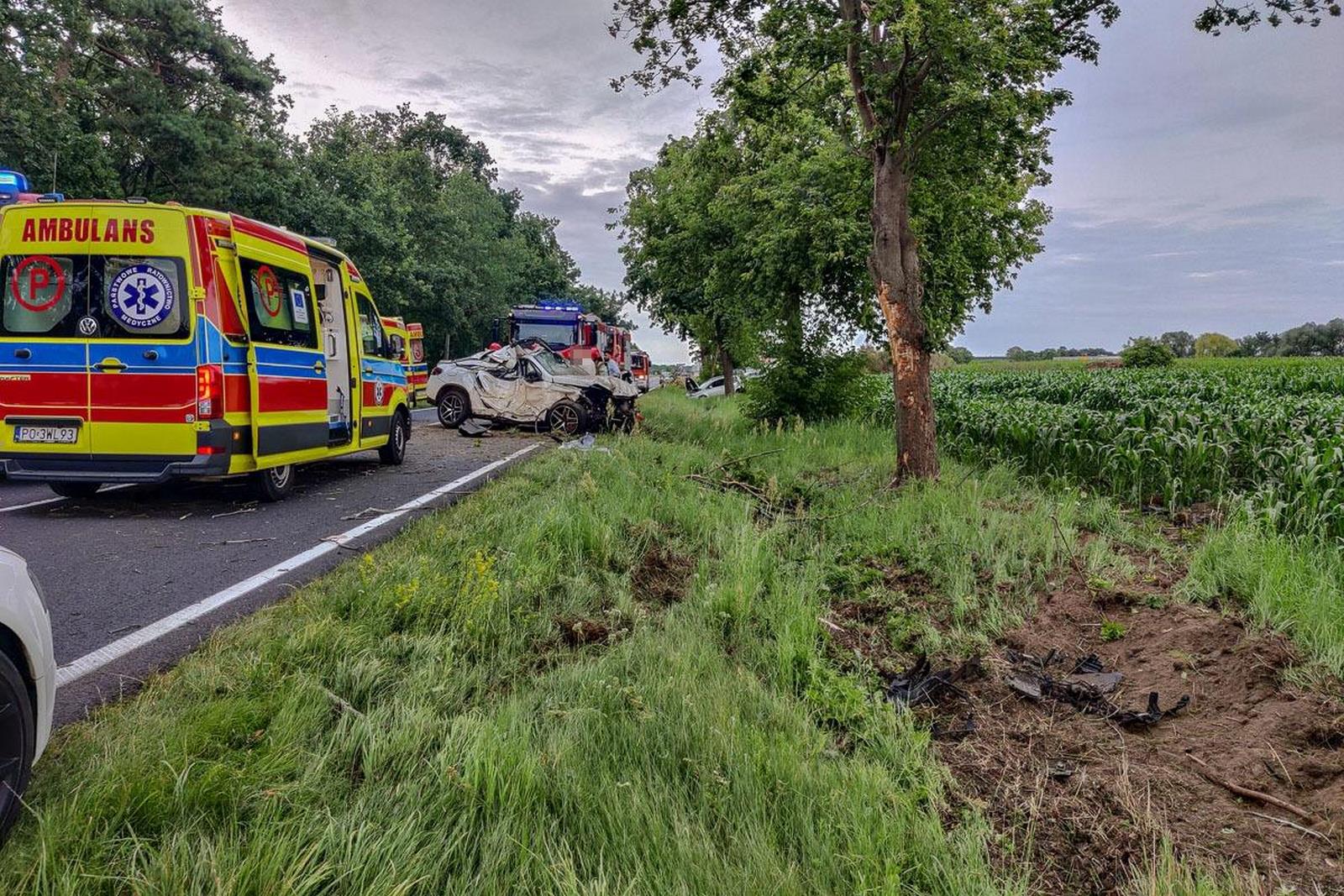 Wypadek na DW 434 Śrem – Kórnik! Na miejscu śmigłowiec LPR.
