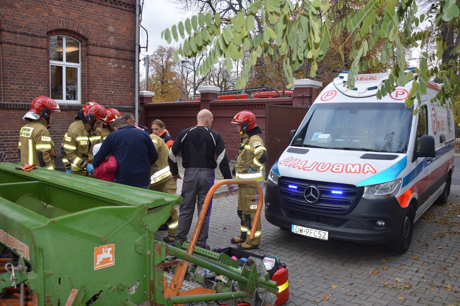 Z kolei strażacy z KP PSP w Rawiczu, po zabezpieczeniu terenu udzielili mieszkance gminy Rawicz kwalifikowanej pierwszej pomocy polegającej m.in. na wsparciu psychicznym oraz unieruchomieniu ręki, a po przyjeździe zespołu ratownictwa medycznego, przy pomocy sprzętu tnącego skrócili pręt, wokół którego była zawinięta dłoń kobiety.