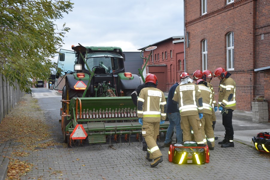 Z racji, że wezwanie dotyczyło adresu, który znajduje się zaledwie kilkaset metrów od siedziby, strażacy bardzo szybko dotarli na miejsce. Wówczas okazało się, że na teren wspomnianej firmy ciągnikiem rolniczym z podczepionym siewnikiem, po pomoc przyjechał rolnik, wcześniej w sąsiedztwie obsiewający pole.