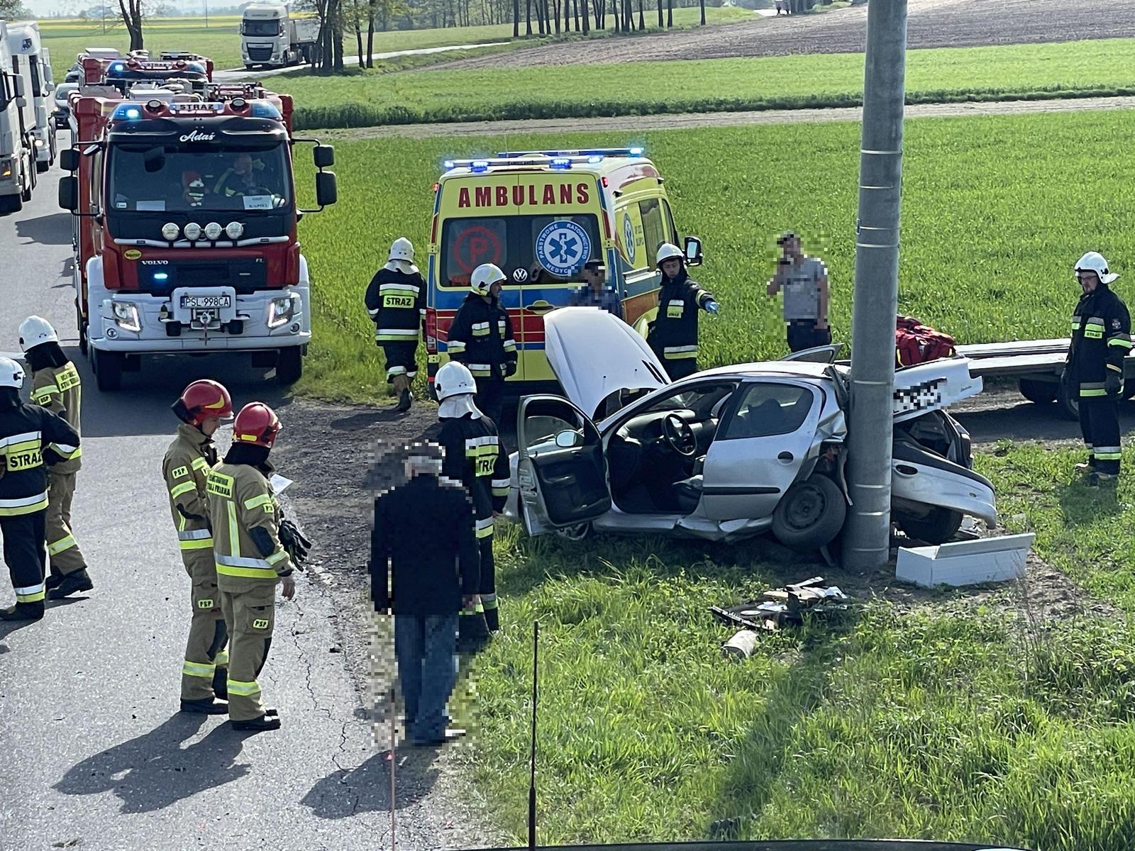Działania straży pożarnej polegały na zabezpieczeniu miejsca zdarzenia, wyznaczeniu strefy bezpiecznej z uwagi na znajdujące się napięcie w przewodach elektrycznych, na których znajdował się uszkodzony pojazd, uprzątnięciu jezdni. Podczas działań ruch na drodze powiatowej był zablokowany.