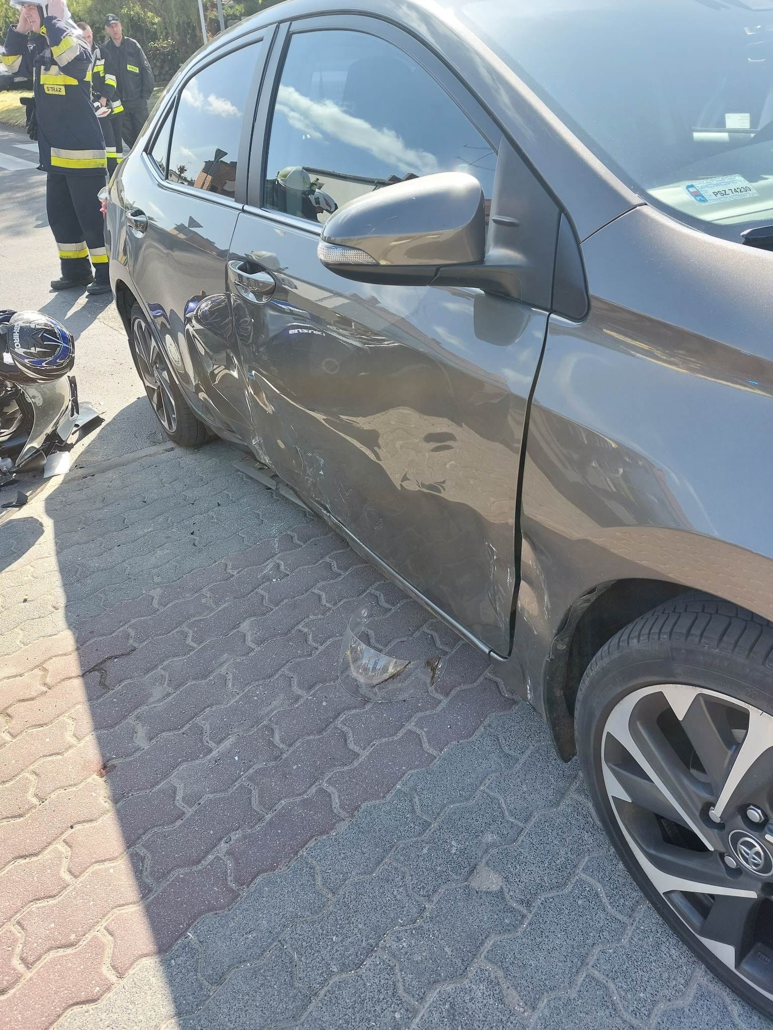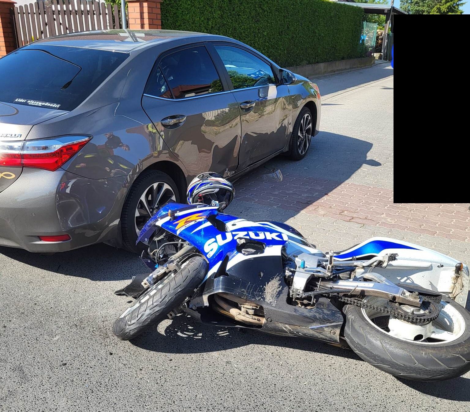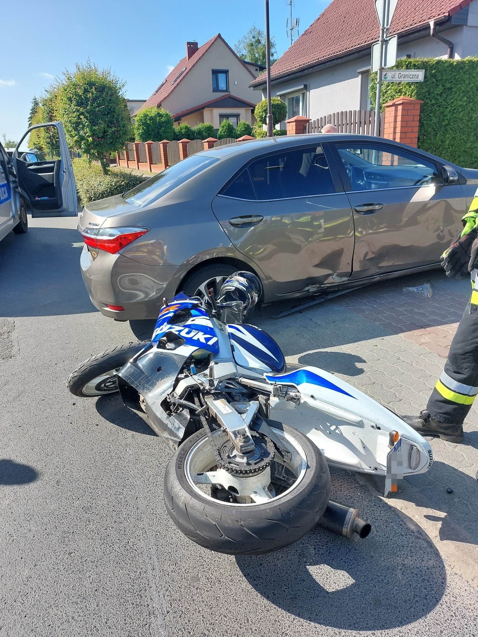 Wypadek z udziałem motocykla i samochodu, jedna osoba poszkodowana