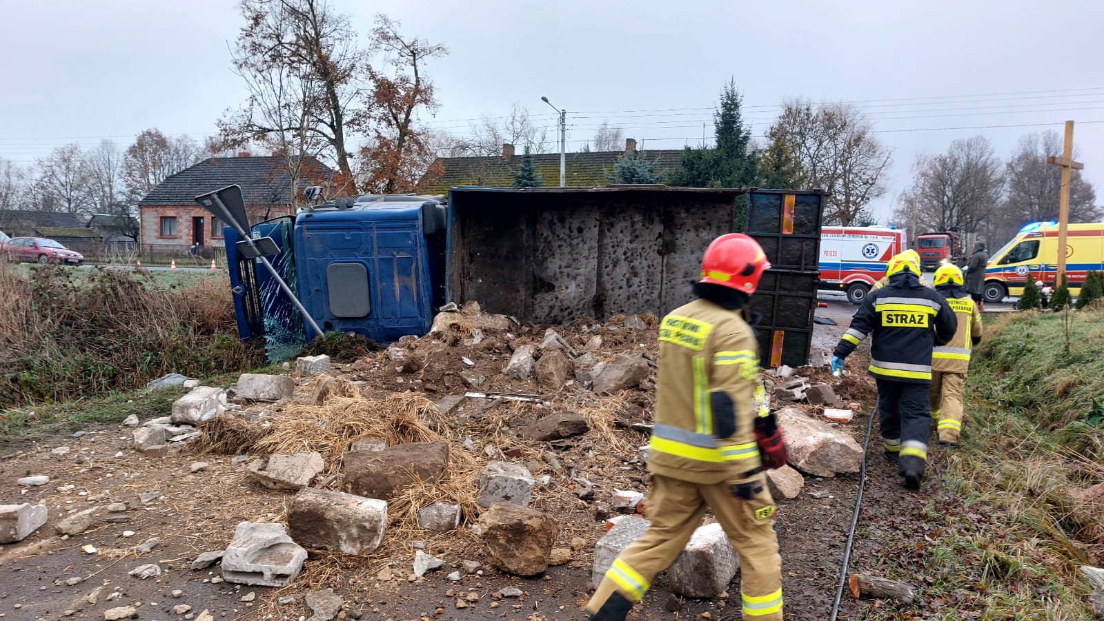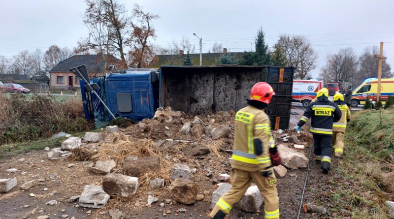 Wypadek z udziałem samochodu ciężarowego