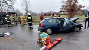14 grudnia o godzinie 12:39 Stanowisko Kierowania Komendanta Powiatowego Państwowej Straży Pożarnej w Ostrzeszowie otrzymało zgłoszenie o zderzeniu samochodu osobowego z samochodem ciężarowym w miejscowości Kuźnica Grabowska (gmina Kraszewice).