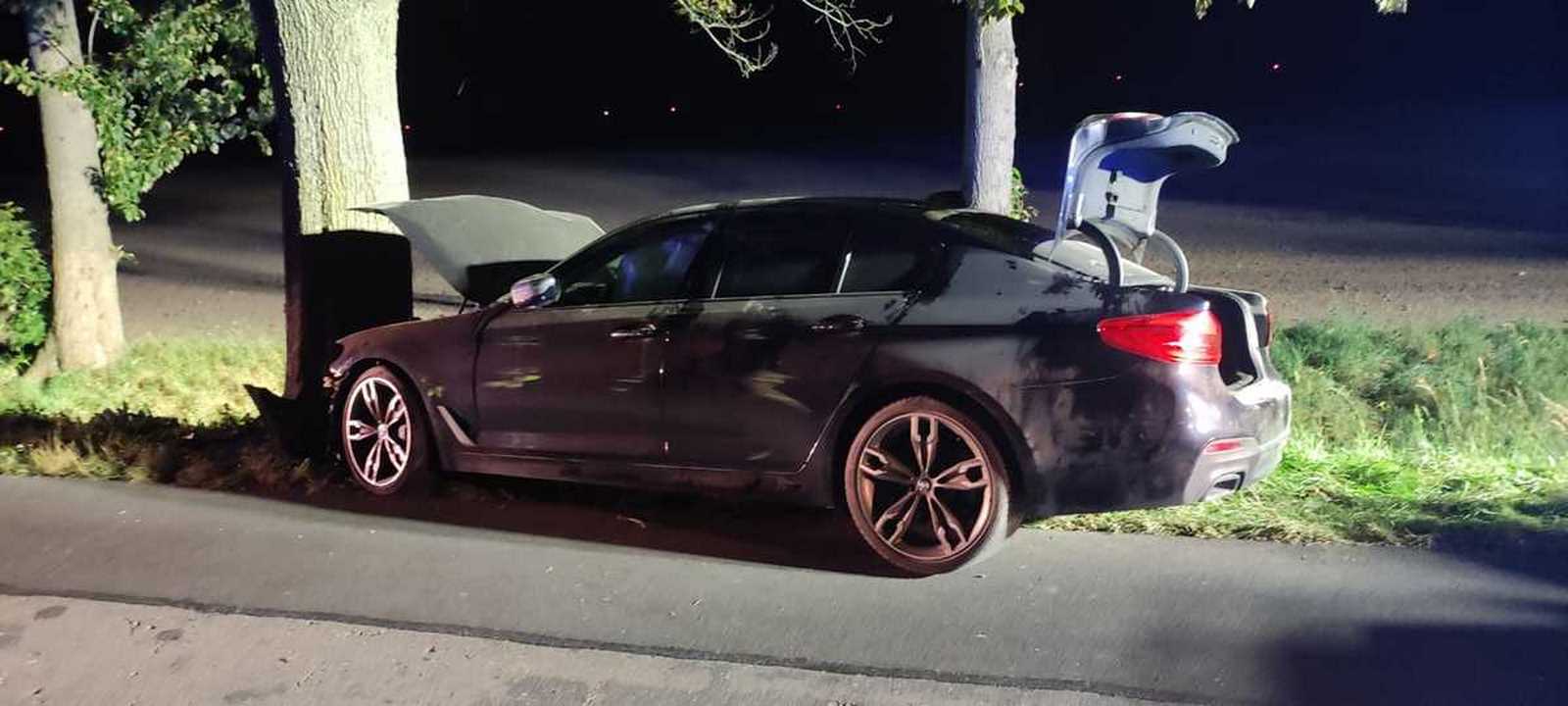 Kobieta kierując pojazdem marki Audi, wyprzedzała pojazd marki BMW. W trakcie tego manewru, audi uderzyło w bok bmw, z kolei uderzone bmw zjechało na pobocze uderzając w przydrożne drzewo.