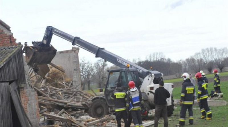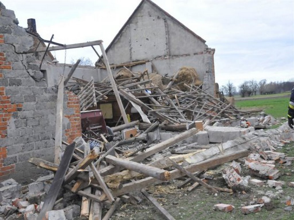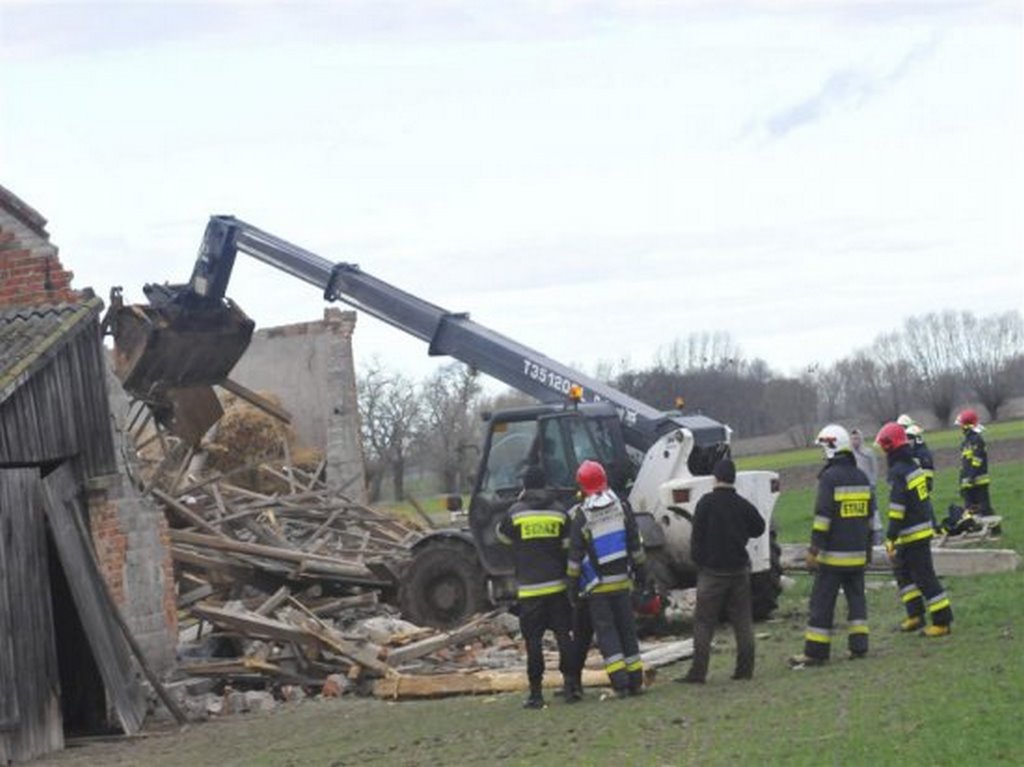 Z ustaleń Dyżurnego SKKP wynikało, że nie ma osób poszkodowanych. Na miejsce zadysponowano dwa zastępy z Jednostki Ratowniczo Gaśniczej w Kościanie oraz zastępy OSP Racot i Turew. Działania strażaków polegały na zabezpieczeniu terenu objętego działaniem, a następnie z zachowaniem szczególnej ostrożności wykonano dostęp i ewakuowano najbardziej wartościowy sprzęt znajdujący się w obiekcie. Działania strażaków wsparli mieszkańcy sąsiednich wsi użyczając ciągnika i ładowarki czołowej. Powyższy sprzęt pomógł zminimalizować ryzyko podczas działań, szczególnie podczas rozbiórki zagrażających bezpieczeństwu uszkodzonych elementów konstrukcyjnych budynku. Najprawdopodobniej to silny wiatr był przyczyną niebezpiecznego zdarzenia.