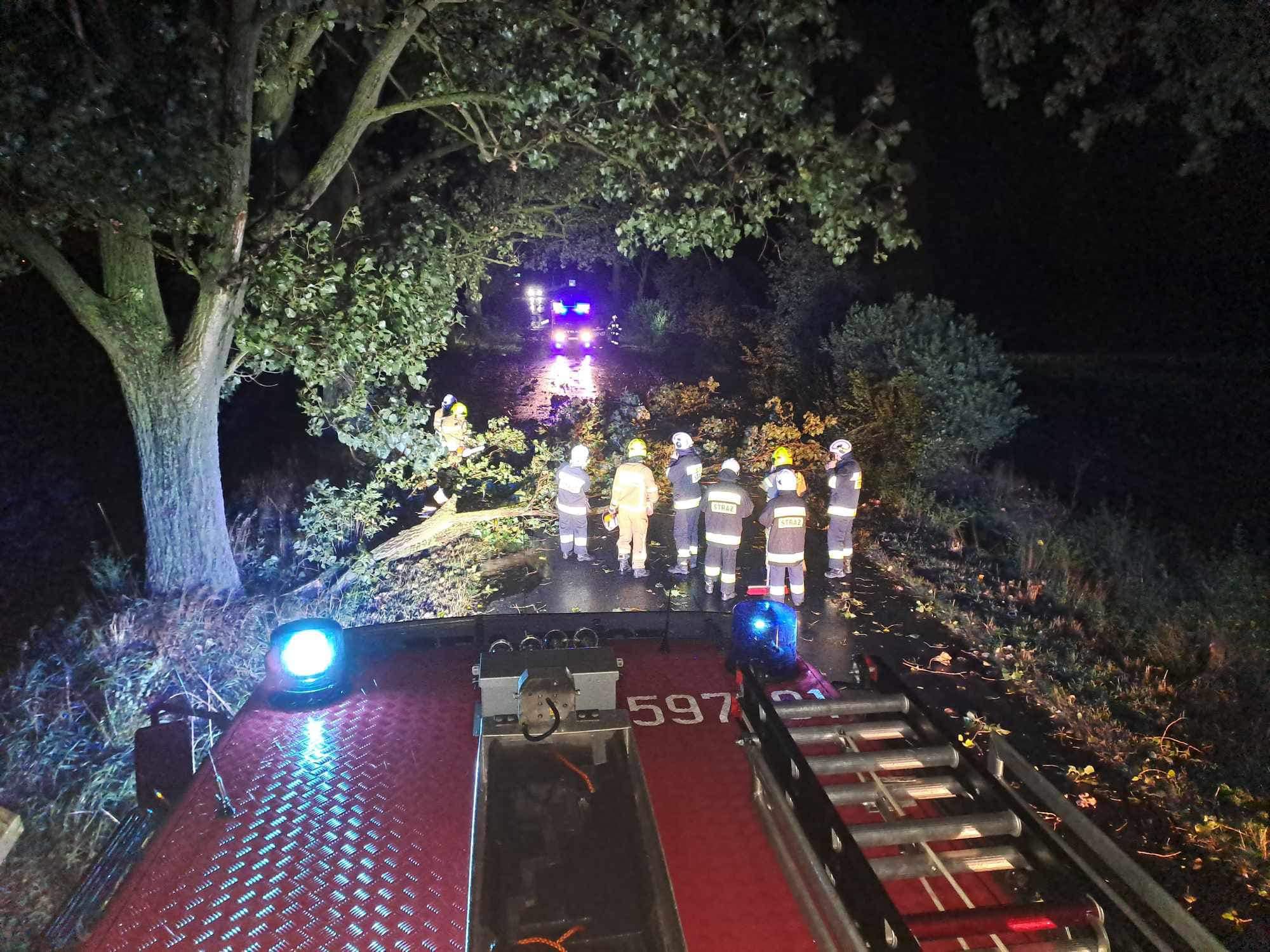 Szeroki zakres działań obejmował między innymi: zabezpieczenie miejsca zdarzenia, usuwanie połamanych drzew i konarów z drogi.