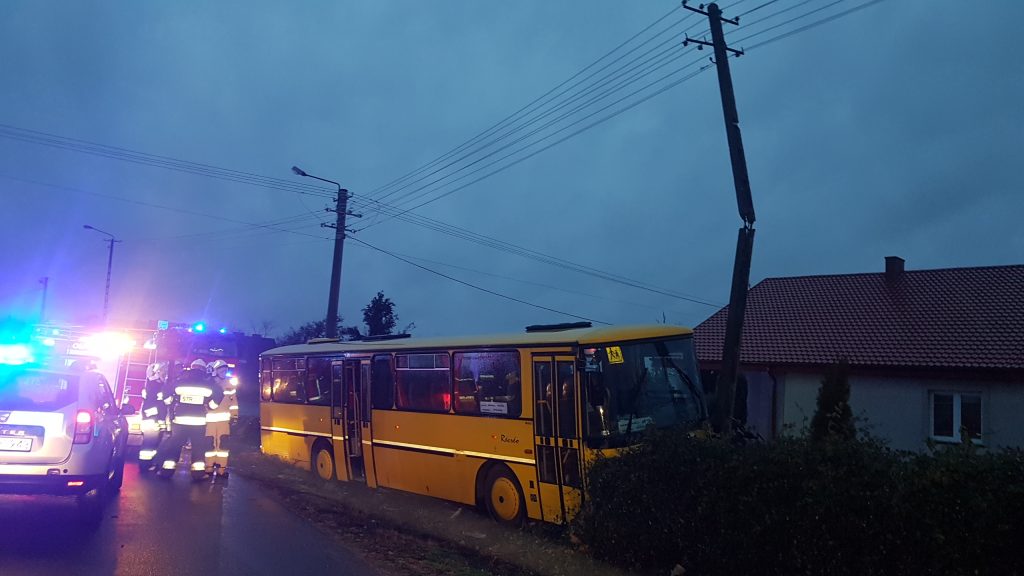 Samochodem osobowym podróżowała jedna osoba, natomiast autobusem pięć osób, w tym kierowca oraz opiekun i trójka dzieci. Wszyscy uczestnicy wypadku opuścili pojazdy o własnych siłach przed przybyciem strażaków. Dzieci zostały zabrane przez rodziców do domu. Autobus przodem uderzył w betonowy słup energetyczny, który uległ złamaniu, w związku z powyższym na miejsce wezwano Pogotowie Energetyczne.