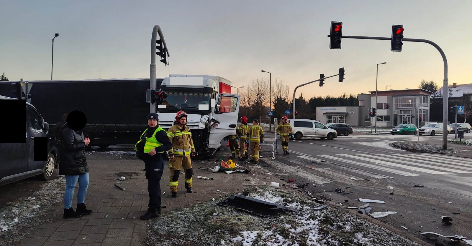 W poniedziałek, 13 stycznia 2025 roku o godz. 7.50 do dyżurnego Stanowiska Kierowania Państwowej Straży Pożarnej w Szamotułach wpłynęło zgłoszenie z Centrum Powiadamiania Ratunkowego, które informowało o uderzenie samochodu ciężarowego w słup sygnalizacji świetlnej oraz jednej osobie poszkodowanej uwięzionej w pojeździe w miejscowości Szamotuły.
