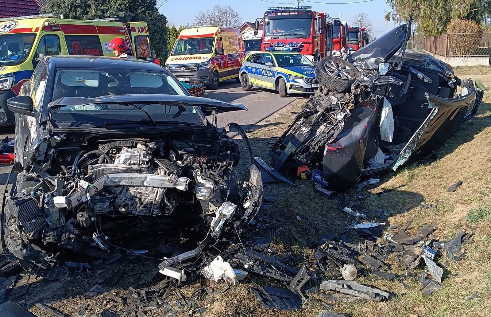Po przybyciu na miejsce zdarzenia ustalono, że doszło do zderzenia dwóch samochodów osobowych, w których podróżowały cztery osoby, w tym dwoje dzieci. Strażacy przeprowadzili działania ratownicze, które obejmowały zabezpieczenie miejsca zdarzenia, wykonanie dostępu do poszkodowanego przy użyciu narzędzi hydraulicznych oraz udzielenie kwalifikowanej pierwszej pomocy wszystkim uczestnikom wypadku. Wszystkie osoby poszkodowane zostały przekazane przybyłym czterem zespołom ratownictwa medycznego na miejsce zdarzenia, które podjęły decyzję o zabraniu osób poszkodowanych do szpitala celem dalszej hospitalizacji.