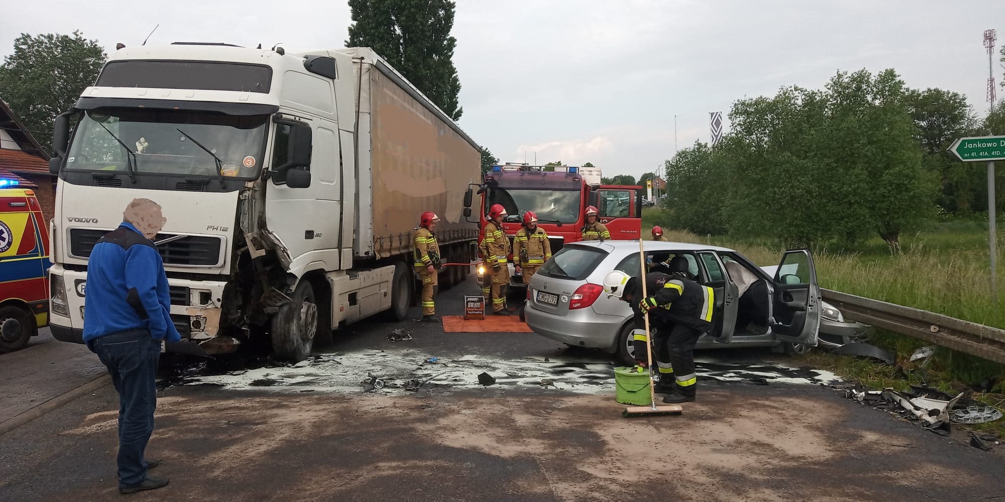 2 czerwca 2022 r. tuż przed godziną 7 do Stanowiska Kierowania Komendanta Powiatowego Państwowej Straży Pożarnej w Gnieźnie wpłynęła informacja o zderzeniu samochodu ciężarowego z samochodem osobowym w miejscowości Jankowo Dolne, gm. Gniezno. Na miejsce zdarzenia zadysponowano dwa zastępy z Jednostki Ratowniczo – Gaśniczej w Gnieźnie oraz po jednym zastępie z OSP Strzyżewo Smykowe i OSP Modliszewo.