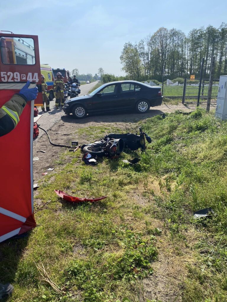 20 maja br. o godzinie 15:31 do SKKP PSP w Obornikach wpłynęło zgłoszenie o zderzeniu samochodu osobowego marki BMW ze skuterem w miejscowości ZAwady.