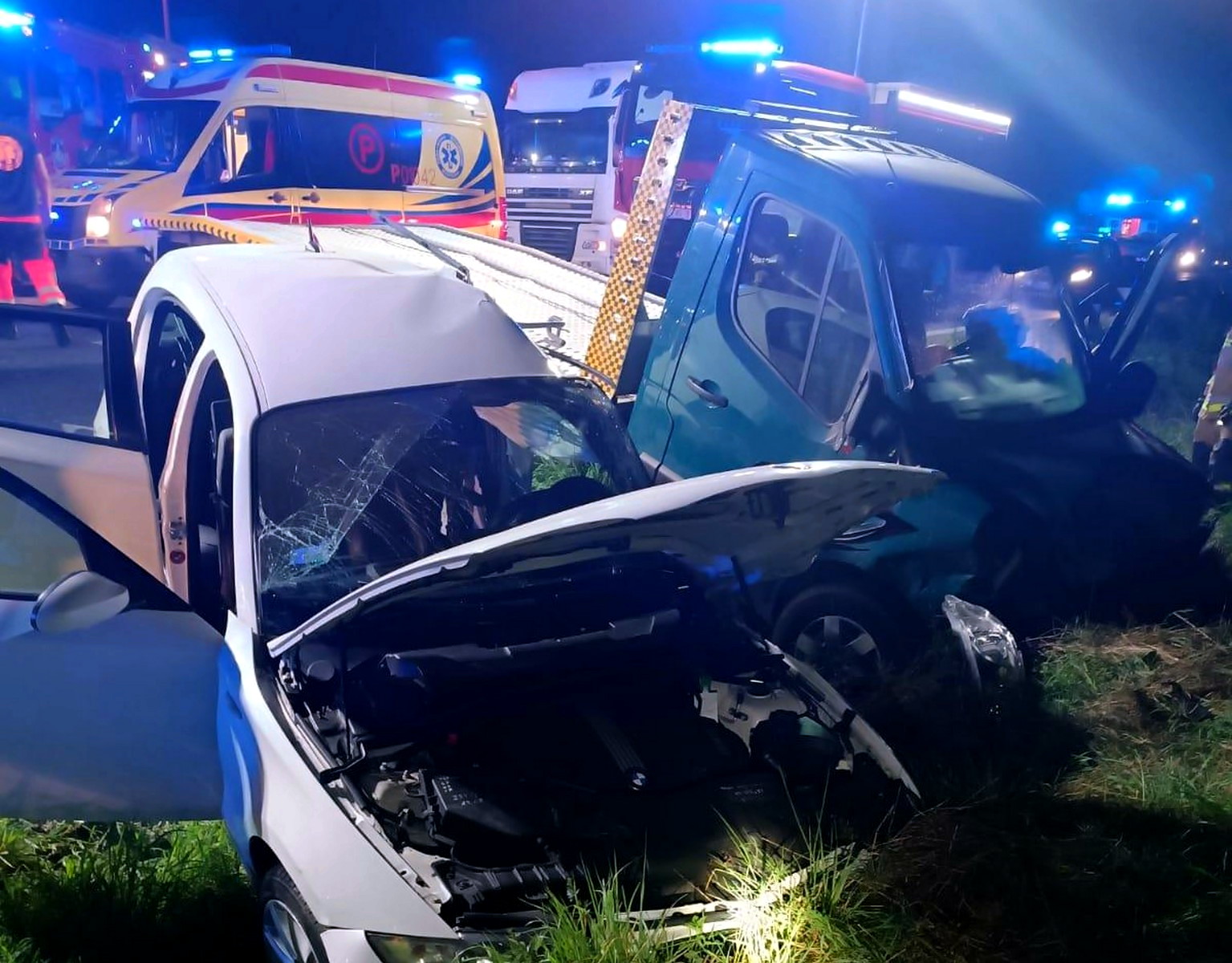 Dyżurny do działań zadysponował strażaków z Jednostki Ratowniczo-Gaśniczej w Kole oraz Ochotniczej Straży Pożarnej z Trzęśniewa. Po przybyciu na miejsce zdarzenia ustalono, że doszło do zderzenia samochodu osobowego z samochodem dostawczym (laweta).