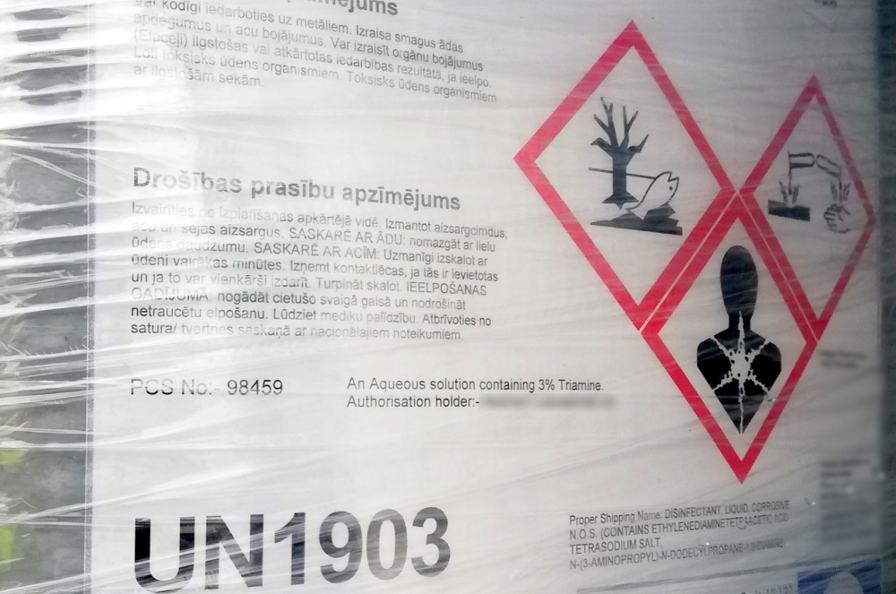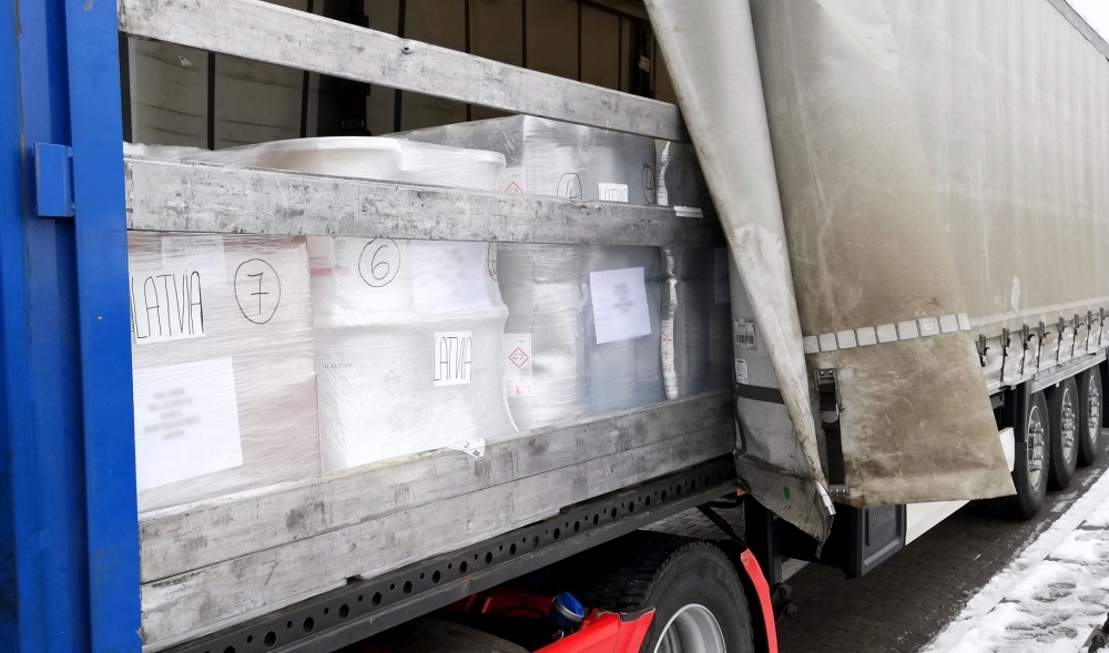 Żrące materiały niebezpieczne były nieprawidłowo oznakowane. Łotewski kierowca musiał je oznakować zgodnie z umową ADR, żeby móc jechać dalej.