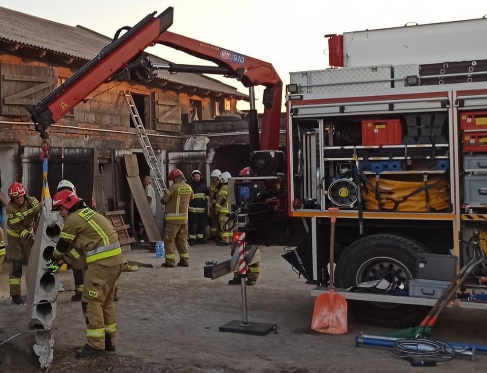 W dniu 4 sierpnia br. ok godz. 18.30 Stanowisko Kierowania Komendanta Powiatowego Państwowej Straży Pożarnej w Ostrowie Wielkopolskim otrzymało zgłoszenie, że w miejscowości Szczury, gmina Ostrów Wielkopolski, doszło do zawalenia części żelbetowego stropu w budynku inwentarskim.