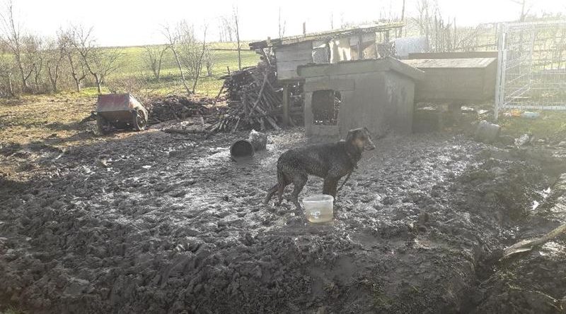 Opisywane przez zawiadamiająca nieludzkie warunki w jakich znajdował się czworonóg po chwili zweryfikowali przybyli na miejsce zdarzenia policjanci. Piesek znajdował się na dworze. Jego wybieg ograniczony był długością stalowego łańcucha. Miejsce w którym był uwiązany było podmokłe. Piesek brodził w błotnej brei, był cały przemoczony i zziębnięty. Buda psa była dziurawa, nie zapewniała miejsca na ogrzanie się. Piesek za każdym razem kiedy chciał wejść do budy, musiał przejść przez kałużę błota. Poprzewracane wiadra wokół wybiegu zamiast karmą i wodą, wypełnione były błotem. Podczas interwencji żaden z opiekunów psa nie poczuwał się do tego, aby wyjść na podwórko.